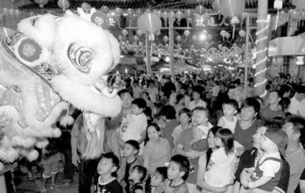 2月10日,游人在哥打基纳巴卢市街头嘉年华会上观看舞狮节目。东马来西亚沙巴州和首府哥打基纳巴卢市政府在哥打基纳巴卢街头举办为期四天的“新春嘉年华会”,燃放烟花、举行文艺表演以及展售年货,迎接华人农历新年的到来。 新华社发