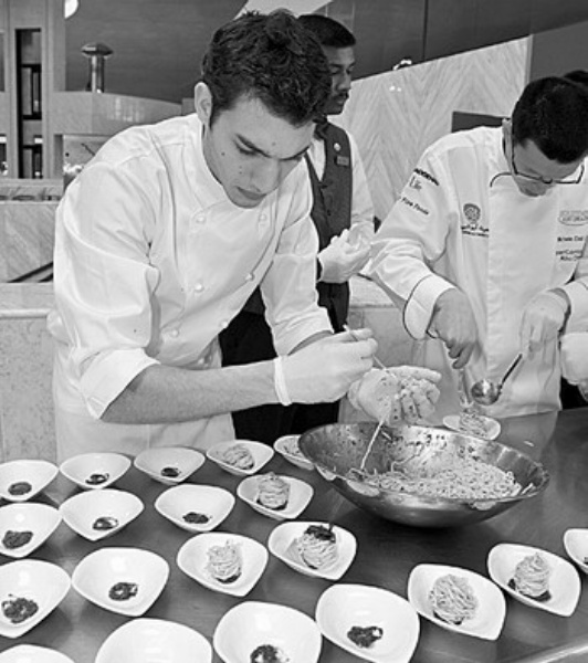 2月8日,来自意大利的厨师们在阿联酋阿布扎比举办的国际烹饪艺术节上制作意大利面。由阿布扎比旅游局和阿布扎比国家酒店集团共同承办的“2010年第二届阿布扎比烹饪艺术节”日前在阿布扎比各大宾馆酒店同时举行,本届烹饪艺术节有来自全球15个国家和地区的厨艺代表队登台献艺。 新华社记者安 江摄