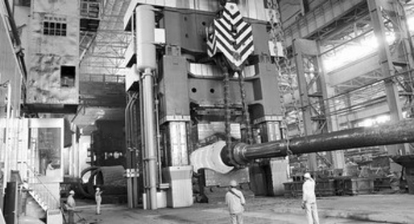 图为中国一重制造的我国技术最先进的万吨水压机在锻造钢锭。 资料图片