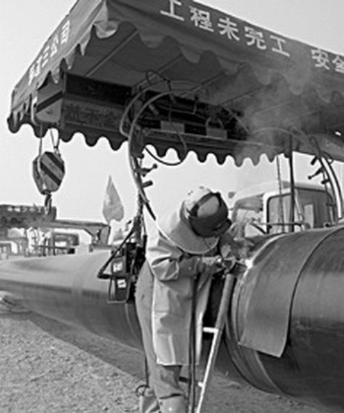 图1:天然气管线焊接中。 齐 慧摄