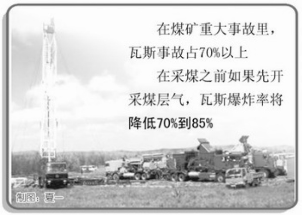 从安全效益上讲,煤层气开发也有利于煤矿安全生产。瓦斯被称为煤矿安全的“第一杀手”。资料显示,在煤矿重大事故中,瓦斯事故占到70%以上。在采煤之前如果先开采煤层气,瓦斯爆炸率将降低70%到85%。