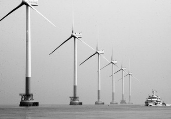 2月22日,上海海事局洋山海事处的巡逻艇正在安装了风力发电机的海域巡视。上海东海大桥100兆瓦海上风力发电示范工程,是我国第一个由国家发改委正式核准并列为示范项目的大型海上风电项目,也是亚洲首座海上风力发电场,目前海上34台风机安装已进入尾声,预计于今年5月1日前并网发电。 新华社记者 陈 飞摄