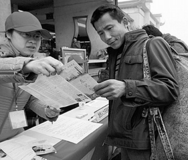 上午10时30分送肥车队来到了山东无棣县佘家巷乡前道口村,看到送肥车队到来,村党支部书记马上用村里的高音喇叭喊了起来:“送肥车又来了,大伙快去呀!”一会儿工夫,呼啦啦一下子围上了一群农民。“去年俺种麦领到了500元的补贴款,植棉共收入3万多元,今年我打算给土地多投点。”一位50多岁的村民高兴地同营业员说。在送肥车一旁,一个农民同记者攀谈起来:“现在买化肥太方便了,只要挂个电话,就送货上门。”
