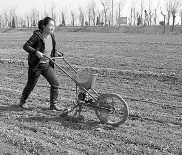 2月20日,河南开封杜良乡治台村农民使用小型农机具在田间给小麦追施化肥。 李俊生摄(新华社发)