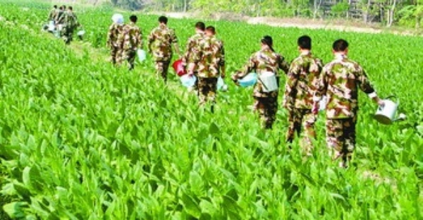 2月24日,德宏边防支队“抗旱小分队”在田间帮助村民浇水抗旱。 目前,云南省旱情十分严重,德宏边防支队组织30多支“抗旱小分队”,深入到田间帮助农民抗旱保苗,已在全州7个旱灾区浇灌麦田1000亩。 谢丽勋摄 (新华社发)