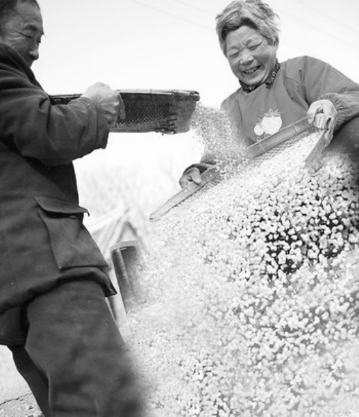2月25日,河北易县狼牙山脚下的武家庄村连俊义夫妇正在晒玉米。该村去年种植的玉米喜获丰收,村民利用农闲晒粮归仓。 本报记者 李景录摄