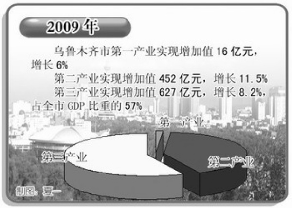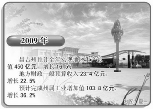 2009年,乌鲁木齐首次突破两个大关:地区生产总值达到1020亿元,增长15%,首次跨越千亿元大关;地方财政一般预算收入100.98亿元,增长37.53%,突破百亿元大关。昌吉2009年预计实现地区生产总值450亿元,地方财政一般预算收入23.4亿元,增长22.5%;工业成为拉动经济增长的重要力量,预计完成州属工业增加值103.8亿元,增长36.2%。