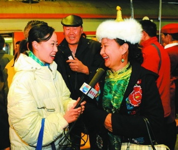 3月1日,记者在北京西站采访刚下火车的杜梅委员(右,鄂温克族)。当天7时20分,来自内蒙古自治区的部分全国政协委员乘坐K90次列车抵达北京西站,这是首批抵京参加全国政协十一届三次会议的京外委员。 据悉,来自江苏、重庆、四川等地的全国政协委员也于1日陆续抵达北京。带着广大群众的心声和希望,委员们将在即将召开的盛会上履行政治协商、民主监督、参政议政