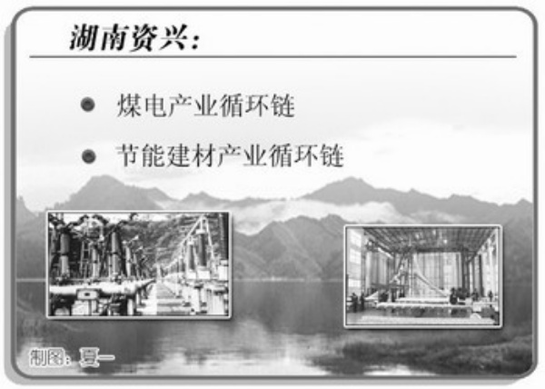 资兴市精心打造煤电产业循环链,利用充足的煤炭资源,投资近30亿元,湖南华润电力鲤鱼江有限公司开工建设了以烧劣质烟煤为主的2×30万千瓦项目,资兴焦电股份公司开工建设了以烧煤矸石为主的2×6万千瓦项目。这些项目建成后,年消耗劣质煤150万吨、煤泥50万吨、煤矸石145万吨,并实行热电联产,实现了煤泥、煤矸石等废弃资源的再循环和再利用。湖南省资兴焦电股份公司通过对外融资合作,先后完成了21万吨焦炉扩改、煤气发电、粗苯回收等项目,把排出的废气经煤气发电机组做功,再经余热锅炉产生蒸汽,从而实现煤气能源的充分利用,目前该公司已建成了煤炭—洗选精煤—煤化工产品—煤矸石发电—炉渣作建材原料这样一个循环系统,形成了年产洗煤6万吨、炼焦42万吨、煤矸石发电6亿千瓦时、煤气内燃机发电3000万千瓦时、炼油1.5万吨的煤矸石综合利用发电项目。