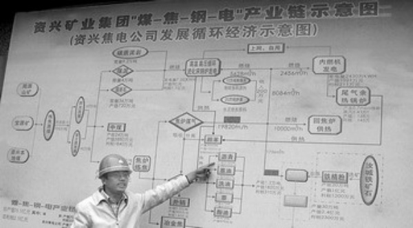隆冬时节,寒风刺骨,湖南省资兴焦电股份有限公司的洗煤厂里却热火朝天,十几辆运煤车在秩序井然地作业。公司总资产为2.34亿元,围绕实现循环经济目标,通过扩大焦炭生产能力,运用重介质洗煤技术,利用焦炉煤气发电,对煤矸石发电进行技术改造,优化了结构,满足了市场需求,公司经济效益与社会效益明显提高,煤—焦—油—化工、煤—气—电—钢黑色链进一步延伸。这家公司只是湖南省资兴市实行产业转型的一个典型。资兴市调整经济结构,大力发展循环经济,探索出了一条具有特色的资源枯竭城市的转型之路。