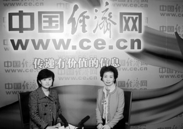 上图 3月3日下午,广东省农业厅副厅长程萍委员(右)来到中国经济网人民大会堂演播室接受在线访谈。这是作为国家重点网站之一的中国经济网首次两会期间在人民大会堂设立演播室。 本报记者 徐立京摄