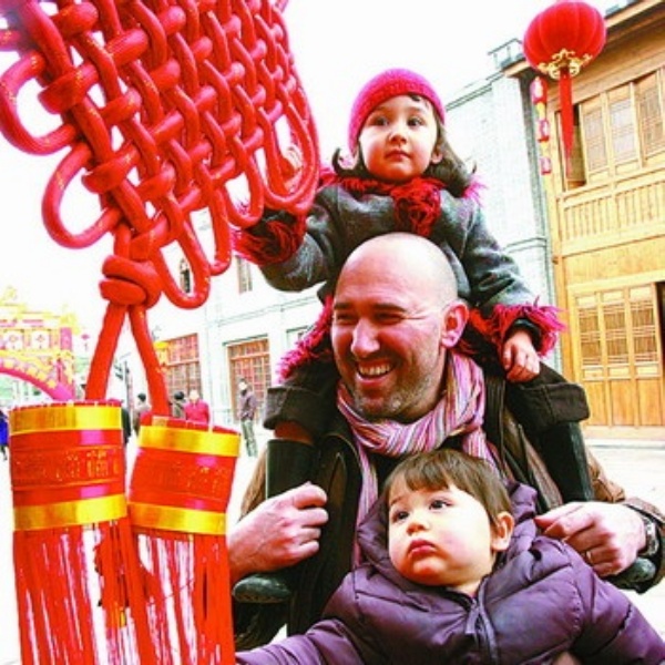1月28日,来自法国的苏万和家人在福州三坊七巷游览。苏万是连江人的女婿,今年回家省亲,听说三坊七巷正在改造,于是带着孩子前来逛逛。 祝敏松摄