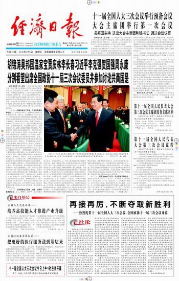 十一届全国人大三次会议举行预备会议大会主席团举行第一次会议