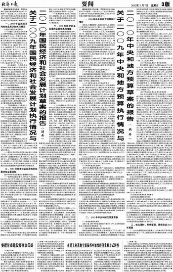 关于二○○九年中央和地方预算执行情况与二○一○年中央和地方预算草案的报告