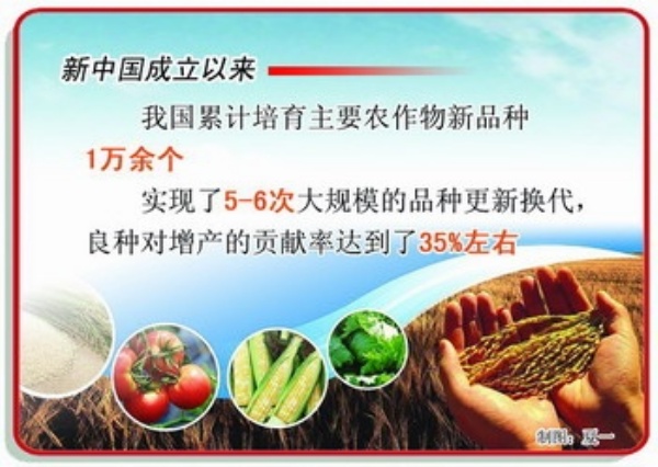 据了解,新中国成立以来,我国累计培育主要农作物新品种1万余个,实现了5次—6次大规模的品种更新换代,良种对增产的贡献率达到了35%左右。近年来,在国家863计划、支撑计划等科技计划和项目的支持下,我国在杂种优势利用、常规育种和部分作物转基因育种等领域达到世界领先或先进水平,一大批种业企业依靠科技不断成长壮大,作物良种覆盖率达到95%以上,为确保近年粮食增产做出了重要贡献。