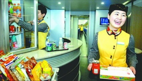 武广高铁的每一列动车上都配备了餐厅,旅客可以选购各种食品饮料,并享受送餐服务。