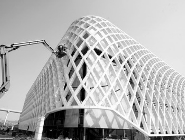 工人在清洁上海世博园区内法国馆的外墙(3月10日摄)。 新华社记者 裴 鑫摄