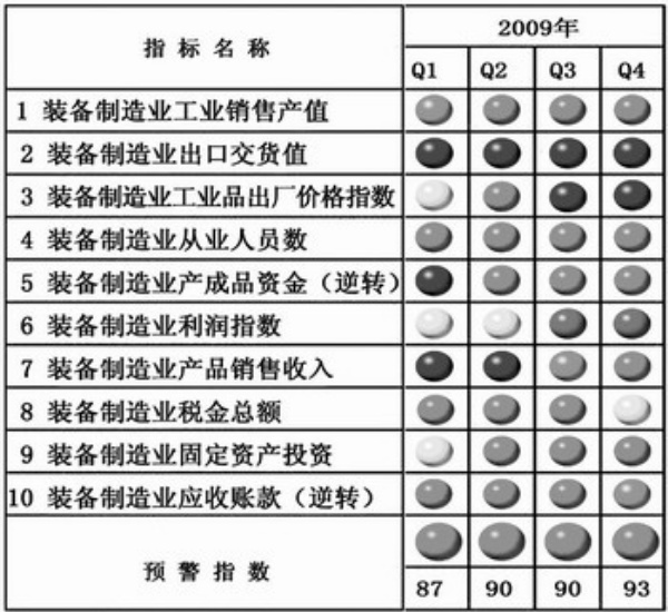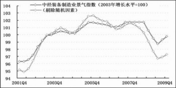 中经产业景气指数监测结果显示,2009年,装备制造业在经过一季度大幅下滑、二季度企稳回升、三季度加速回升后,四季度已经达到较高增长水平。四季度中经装备制造业景气指数为99.7点(景气标准为100点),连续三个季度上升,行业运行基本接近景气正常水平。企业生产规模逐步扩大,增产意愿加强,快速增长势头在2010年一季度有望延续。