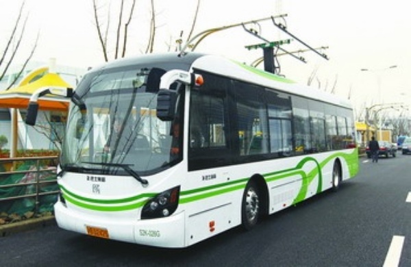 3月15日,一辆超级电容车在上海世博会浦东园区进站充电。 当日,8辆超级电容车开始在上海世博园进行运行测试。这种国内最新研制的超级电容车在运营中无需连接电缆,只需在候客间隙充电30秒到1分钟,就能行驶5公里左右。 新华社记者 任 珑摄