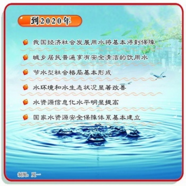 人们有理由期待:到2020年全面建设小康社会目标实现之时,我国经济社会发展用水将基本得到保障,城乡居民普遍享有安全清洁的饮用水,节水型社会格局基本形成,水环境和水生态状况显著改善,水资源信息化水平明显提高,国家水资源安全保障体系基本建立,充满生机与活力的现代水资源管理体系将展现在世人面前。