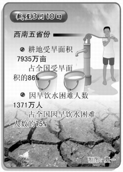 近期,四川省旱情不断发展,给灾区群众生产生活造成严重影响。据民政部统计,截至3月16日,旱灾造成四川省13个市州55个县市区616万人受灾,131万人饮水发生困难。