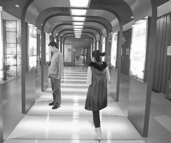 在长廊一端,有两张相距百年的北京城区图吸引了众多参观者,一张是1907年由德国人绘制的北京城区地图;另一张是2008年北京城市及周边的卫星影像图。从100年前的图上可以看到,老城墙将北京古城划分为内、外两城,城门甚多,彰义门、沙窝门、西南门、和义门、崇仁门、平则门、齐化门、顺承门、顺治门、海岱门……外城很多地方都是一些村落,大多是陌生的地名。