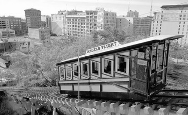 这是3月16日在美国洛杉矶拍摄的正在运行的“天使航班”(Angels Flight)。 位于美国加州洛杉矶市中心的“天使航班”被称为世界上运营里程最短的铁路,全长99米,沿着一个坡度为33%的山丘而建,有两个可以分别容纳25人的车厢运送上下山丘的乘客。“天使航班”于1901年开始运营,最初运营的单程车费为1美分,目前是25美分。“天使航班”曾经在2001年因故停运,直至今年3