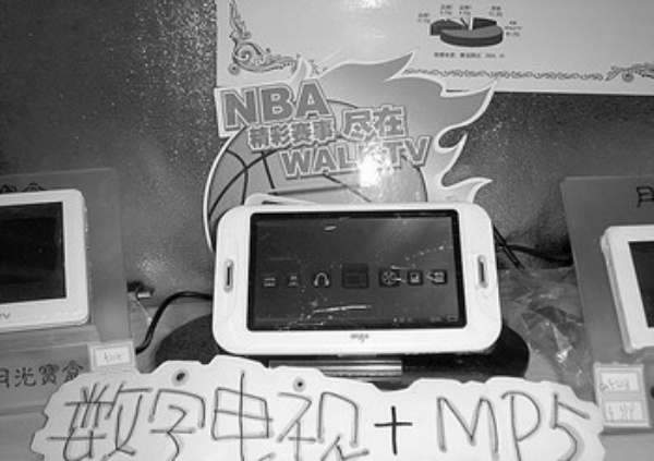 在鼎好电子城,记者发现,许多柜台都会打出“移动电视”、“数字电视”等广告用以吸引顾客。“CMMB给许多产品都增加了一个卖点,比如说爱国者的MP5,从400多元到1000多元不等,有许多档次和价位的产品,有一款900多元的卖得就格外好,”孙美玲拿出一台样机向记者展示,她说:“这款一个是屏幕大一点,看电视舒服,最重要的,是它本身就带着资费,也就是说,顾客买了这款产品,不需要再去缴费,就可以直接收看电视节目了。”