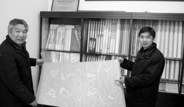 刘氏父子展示的描金粉蜡笺,是非常受顾客欢迎的产品。