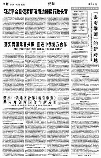 落实中俄地区合作《规划纲要》共同开创两国合作新局面
