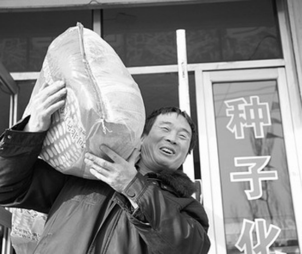 河北省万全县北新屯乡何显庄村农民赵国军正在往车上搬运玉米种子。河北省万全县万佳种业公司今年为农户准备了30多万斤的种子库存,仅玉米种子就达20多种。 李继海 李海峰摄影报道