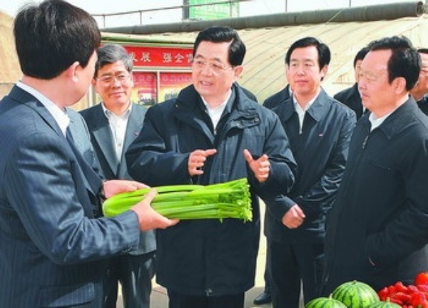 3月21日至23日,中共中央总书记、国家主席、中央军委主席胡锦涛在宁夏回族自治区考察工作。这是胡锦涛到银川小任果业有限公司考察时,勉励企业在发展现代农业、带动农民增收上做出更大成绩。                                       新华社记者 李学仁摄