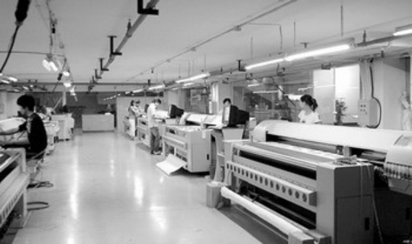 图一:比起传统的印花车间,数码印花车间更为高效、节能,无污染且附加值高,信息化也是纺织业调整结构、转变发展方式的重要手段之一。 吴 铭供图