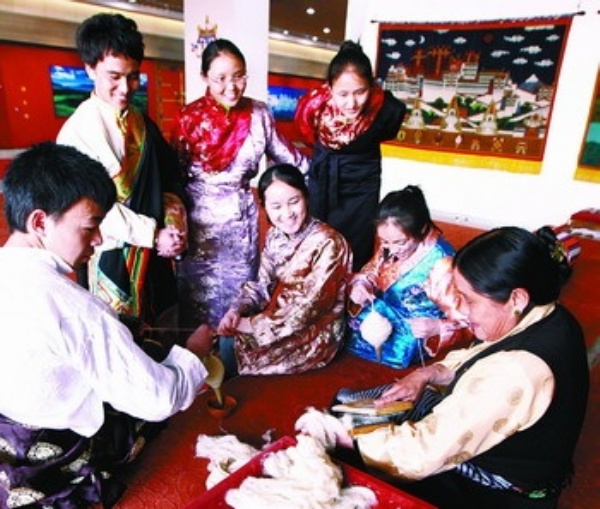 3月28日,来自西藏的手工艺人在展厅演示藏族手工艺术。当日,中国藏学研究中心西藏文化博物馆开馆仪式暨“雪域宝鉴———见证西藏历史、弘扬藏族文化”大型主题展览在北京举行。