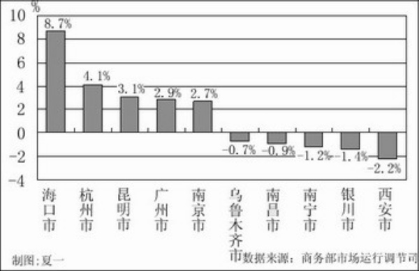 奶粉价格小幅上扬。36个大中城市主要超市国产婴幼儿奶粉价格比年初上涨0.4%,进口奶粉价格比年初上涨0.8%,成人奶粉价格比年初上涨0.8%。其中,海口、杭州、昆明、广州、南京进口婴幼儿奶粉价格涨幅较大,分别为8.7%、4.1%、3.1%、2.9%和2.7%;南京、乌鲁木齐、银川、广州和重庆国产婴幼儿奶粉价格涨幅较大,分别为10.3%、4.1%、3%、2.8%和2.5%。