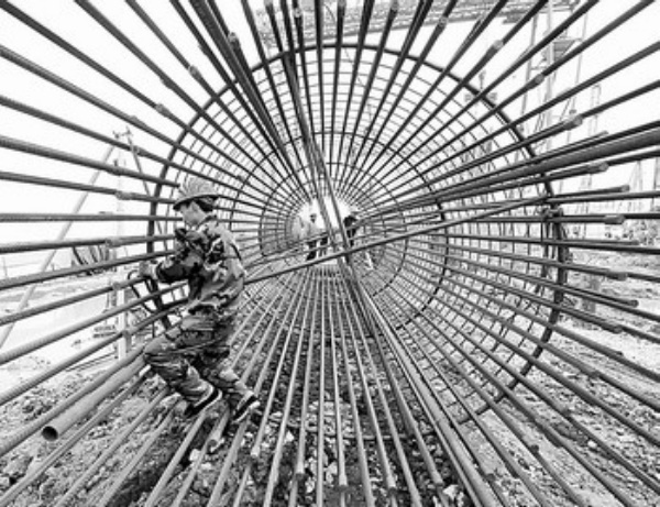 3月29日,施工人员在九江新长江大桥南主塔工地焊接钢筋笼。目前,九江新长江大桥南、北主塔工程已全面开工。江西九江新长江大桥按双向六车道高速公路标准建设,全长25.43公里。 胡国林摄(新华社发)