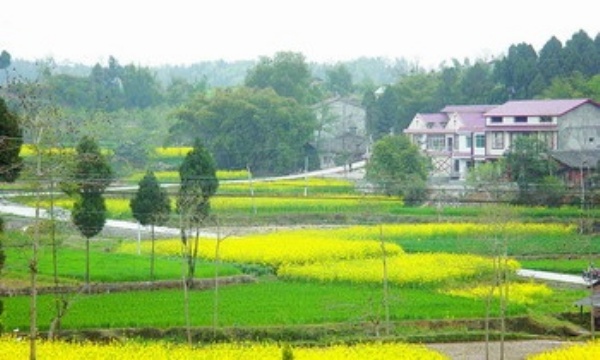 四川省江油市新安镇黑滩村,在村民重建的新房四周,一片片油菜花装点出春天的乡村美景。江油市将地震灾后重建与新农村建设结合起来,大力推广油菜深沟高厢等种植技术,发展乡村旅游和观光农业,拓宽了农民的增收渠道。 本报记者 陈学慧摄