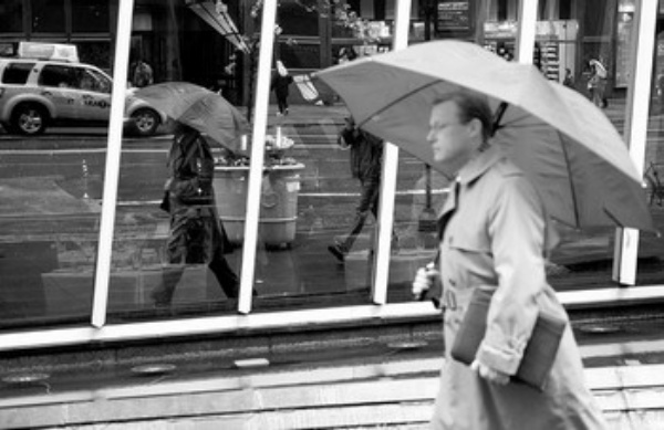 3月30日,在纽约曼哈顿,行人在雨中行走。从3月29日起,美国东海岸遭遇今年3月份以来第二次强降雨天气。 新华社记者 申 宏摄