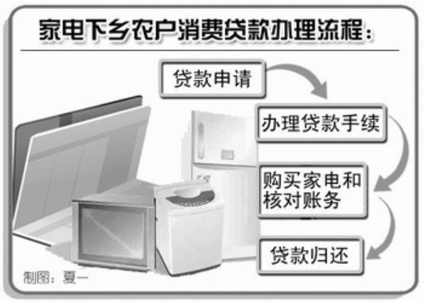 此后,被信用联社评级授信成功的农户到“民乐家电”购买家电下乡产品时交纳少量订金后,凭有效订货凭据便可到当地信用社办理购买下乡家电产品不超过总价50%的消费贷款。