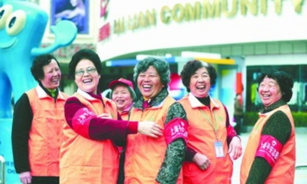 4月2日清晨,上海浦东南码头社区临沂路二村居委会的上海平安社区志愿者,走上街头维持秩序。上海目前共有80余万名平安志愿者,编织起市民共同参与社会治安防范的网络。 本报记者 李景录摄