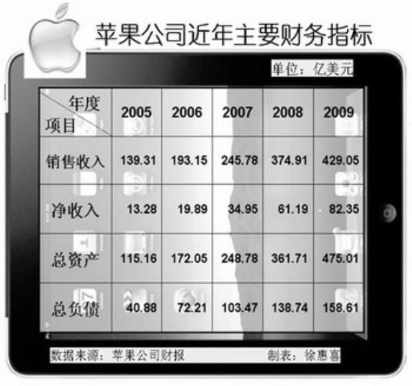 发布于1月25日的苹果公司2010财年第一季(2009年9月27日至12月26日)财报显示,公司营业额达到156.8亿美元,毛利润64.1亿美元,毛利率达40.9%,而净利润亦高达33.8亿美元,属于历史最高水平,Mac电脑和iPhone手机的销量也双双创历史新高。两天之后的1月27日,苹果公司在新产品发布会上展示了众人期待已久的平板电脑iPad,这款利润率据称超过40%的产品在预订第一天就突破了12万份订单。基于以上利好因素,华尔街的分析师们认为,在新的一年里,苹果的销售收入将轻松超过500亿美元。苹果公司已成为消费者和投资者眼中的香饽饽。