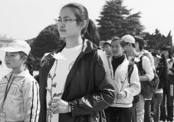 4月4日,安徽大学春晖学社的大学生与农民工子弟在缅怀先烈。当日,安徽合肥蜀山烈士陵园迎来祭扫高峰,许多大中小学生及市民自发前往烈士陵园,向烈士纪念碑献花,缅怀先烈。