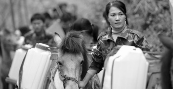 王坤吉就是这支送水大军中的一员。作为一名女军医,她和7位女战友组成了女子抗旱服务队,从2月开始一直为偏远地区送水,“能上的人全都上了。” 这支女子抗旱服务队由汉族、藏族、纳西族、土家族和彝族5个民族组成。“这也是为了更好地与当地的少数民族群众交流。”王坤吉说。