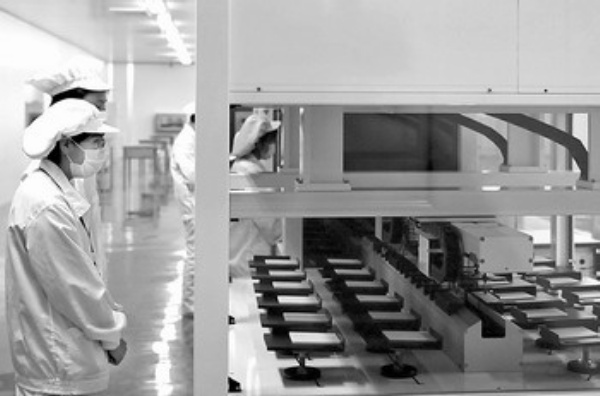 内蒙古山晟光伏材料有限公司在生产太阳能发电设备。