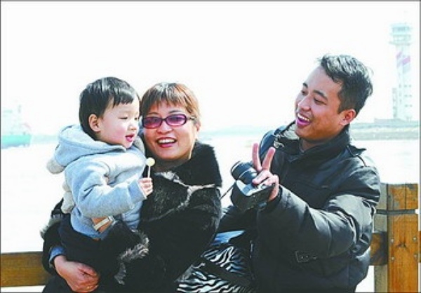 图4:在宝山区吴淞著名的湿地公园,宋黎明小朋友一家正在游玩。该公园曾经是钢渣堆场,经过多年整治,重新恢复了长江滩涂地的原生态风貌,成为市民休闲的好去处。