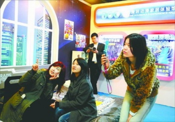 图6:宝山区大场镇动漫街,游客正在青少年动漫科普馆参观。这一动漫生活方式体验街区拥有青少年动漫科普馆、动漫资讯中心等多个动漫功能性平台。宝山区推进产业结构战略调整,加快形成服务经济为主的产业结构,实现全区经济持续、稳定、和谐发展。