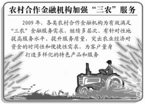 本报讯 记者赵晓强、实习生王甜甜报道:2009年,各类农村合作金融机构为有效满足“三农”金融服务需求,继续多层次、有针对性地提高服务水平、提升服务质量,突出农业经济对资金的时间性和便捷性需求,为客户量身打造多样化的特色产品和服务。