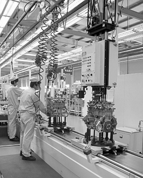 图1:4月7日,沈阳航天三菱汽车发动机制造有限公司第100万台4G6系列发动机下线。据悉,该款发动机主要应用于大排量车型,已在长城哈弗、奇瑞东方之子等车型上搭载使用。 本报记者 张 雅摄