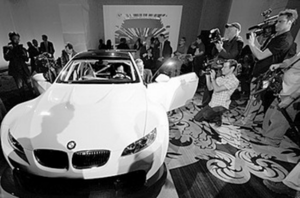 图2:宝马集团宣布,美国艺术家杰夫·昆斯以宝马M3 GT2跑车为基础创作的第17辆艺术车完成,将于6月参加法国勒芒24小时耐力赛。 新华社记者 申 宏摄