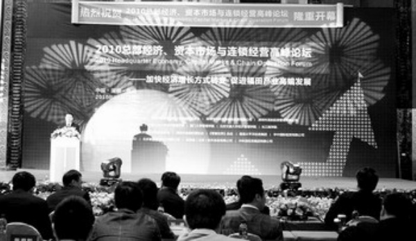 上图为2010年总部经济、资本市场与连锁经营高峰论坛现场。